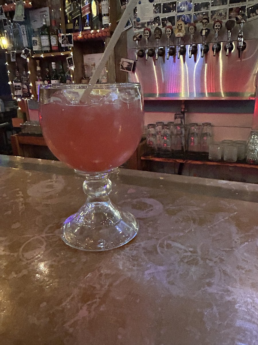 Disappointed that the rain kept us inside as opposed to eating on the patio but we were tucked away in a corner booth and had a great experience. The server was the sweetest, most helpful waitress. I love the all you can eat, self serve chips and salsa bar! Plenty of options including vegetarian and GF. Plenty of room for dining at a table, booth or the bar. Nice mix of people there that day too. Variety of margaritas, and they only serve beer in the can. Definitely will go back.