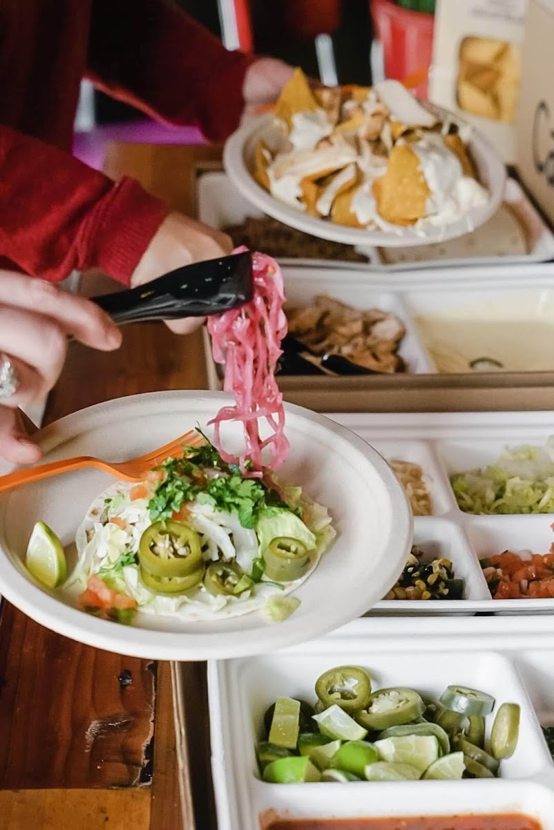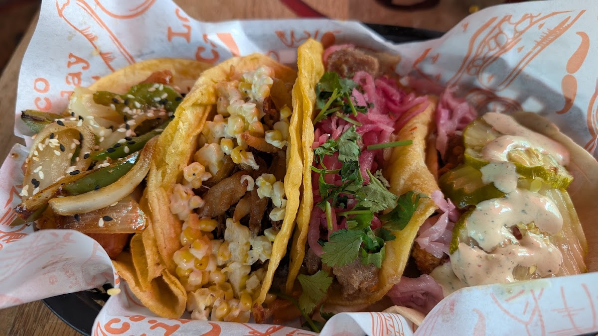 Queso is a must, as so many have mentioned. The chips are possibly the best chips that exist. At least on earth. Carnitas taco - decent, get the one with the pineapple slaw/salsa Barbacoa taco - the beef was watery and was more like a shredded beef crock pot kind of deal. The elote topping stole the show on this taco. Very good, consider getting a different taco with it or just as a side. General Tso's cauliflower taco - actually my favorite one. Executed quite well. Nashville hot chicken taco - not spicy to the point of disappointing. Like, not even black pepper spicy. Not even jalapeno sans the ribs and seeds. Ron Burgundy quesadilla was tasty. Mac n cheese is shells with queso - good but don't assume your kids will eat it. Wife said the blood orange marg was real good.